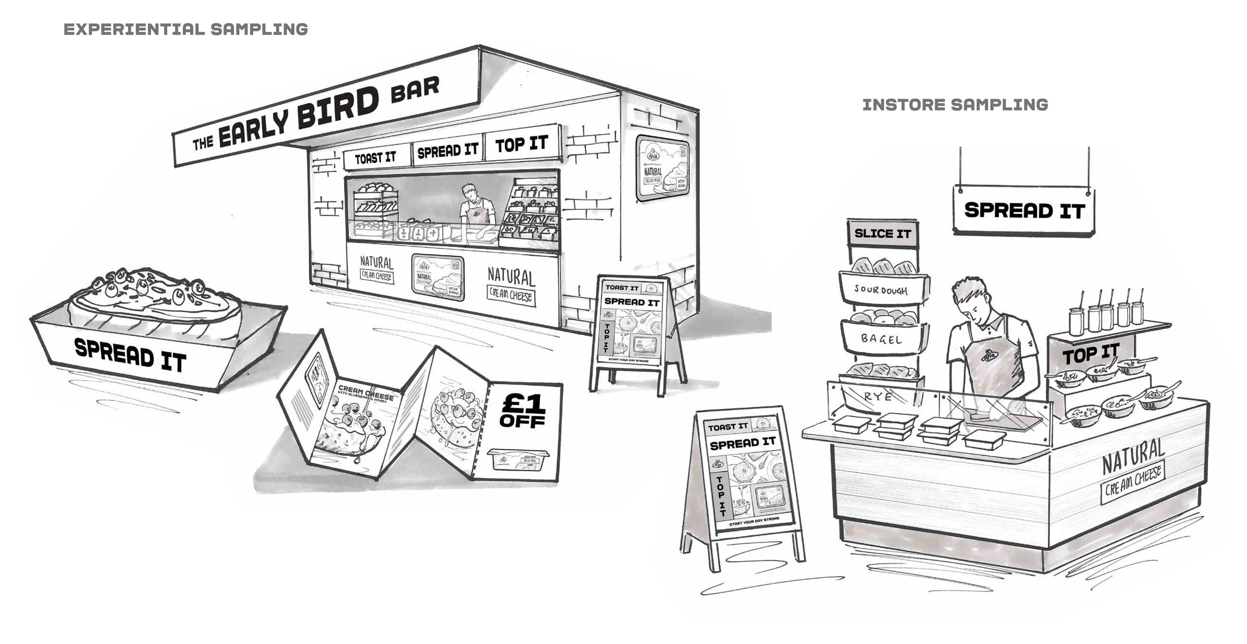 To position Arla Cream Cheese within the breakfast occasion, we created a global toolkit built around a simple ritual: Toast it. Spread it. Top it. Inspired by the growing trend for wholesome breakfast breads and spreads, the campaign showcased quick, natural recipes that made Arla an easy part of a healthy start to the day. Designed using a modular grid system, the toolkit delivered a clean, bold visual language that could flex seamlessly across shopper formats and global markets.